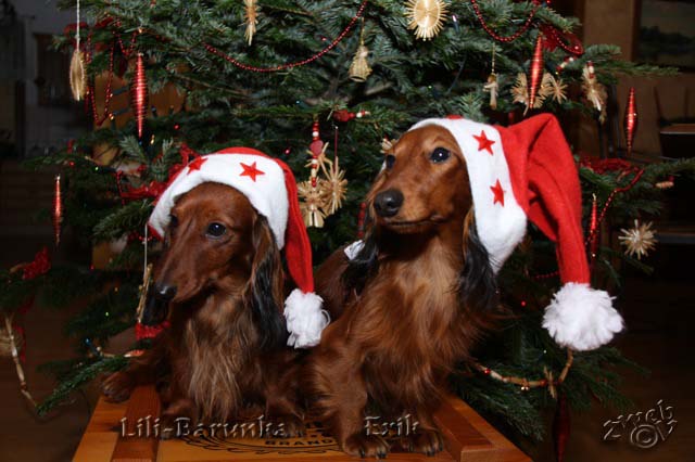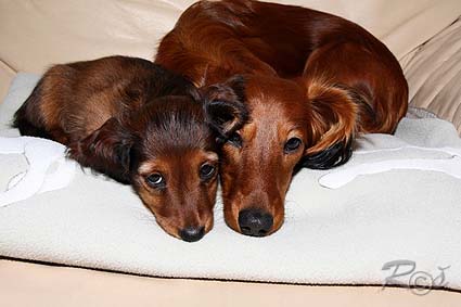 Barunka Elsa alias Lili nám poslala nové fotečky a stejně tak jako její bratr Bonjour Junior, má jako správná jezevčí dáma vše, co co jezevčík má mít. Chytrost, nezbednost, miluje oddaně své páníčky a navíc je to typická představitelka našich odchovů - v mazlení by se rozdala, stejně tak jako všechna naše děvčata. Paní Věrka - majitelka Cindy, by dodala, že není nad větší milovnici, než je Cindička. Já dodávám, že Gersinka je pravděpodobně nositelka těchto genů. :-) Lily se stala, stejně tak jako její ochránce Exík miláčkem rodiny a jak píše její panička, roste do krásy, strašně ráda se chová a mazlí v posteli a ona i Exík dělají rodině velikou radost. S Exíkem jsou nerozlučná dvojka a Lily mu nic nedaruje - ještě štěstí, že on je pravý gentleman. :-)