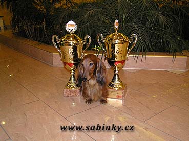 V sobotu 17. ledna 2009 se konal v luxusním PRAŽSKÉM TOP HOTELU již třetí ročník soutěže Šampion šampionů 2008. Organizačně skvěle připraven, hodnotné ceny a velmi příjemná a milá atmosféra. Všem, kteří připravují takto náročnou událost roku, patří dík!!! Účast na tomto prestižním klání byla skutečně veliká. Dostavilo se okolo 246 šampionů všech skupin plemen FCI. Naše IV. FCI skupina byla zastoupena 18ti jezevčíky všech rázů. Soutěž začínala prvním kolem, kde náš odchovanec získal postup do druhého kola. Jeho soupeřem se stal polobratr Ciko a posuzovala paní rozhodčí Lenka Fairaislová.